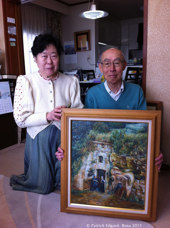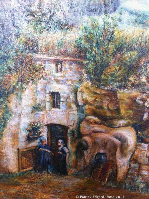 Michiko est une amie de Michel, le frère d’André, missionnaire à Kobe au Japon depuis 1969, et qui lui a fait découvrir la ferme de l’Orbière où elle reviendra à plusieurs reprises. Un fusain dessiné par Michiko, représentant la mère d’André est accrochée dans la maison. Une autre toile plus grande représentant la ferme est aujourd’hui chez la nièce d’André. La palette de couleur, le trait mouvementé et calme à la fois, reflètent l’inimitable lumière de Loire. Un paysage du fleuve vient compléter cette série. On ne peut s’empêcher de penser à un autre peintre voyageur, qui remontait la Loire de Nantes à Orléans, en 1826. William Turner (1775-1851) a ainsi peint plus de 40 villes et sites*, au fil de sa remontée en gabare et bateau à vapeur. A-t-il lui aussi succombé au charme des troglos ?
