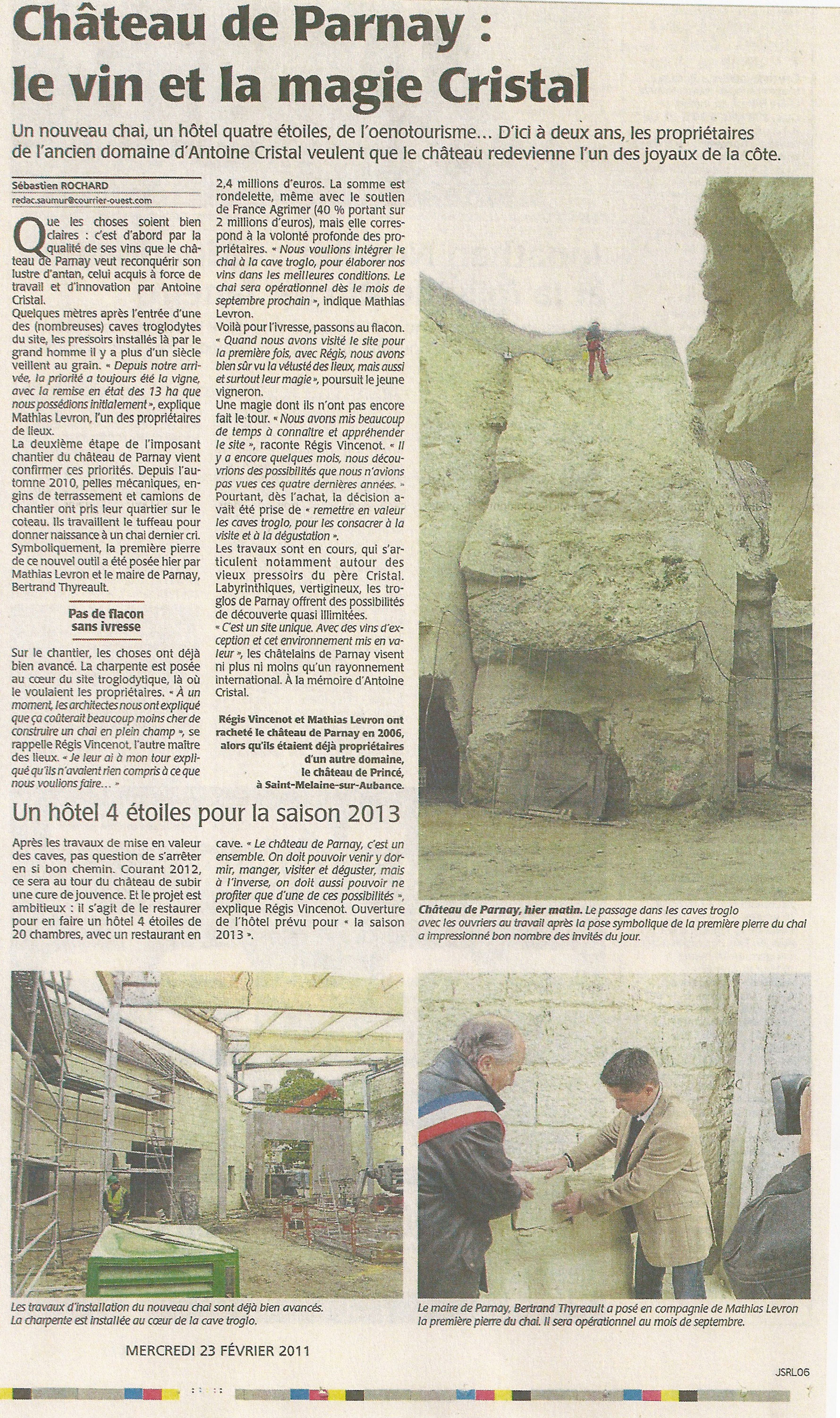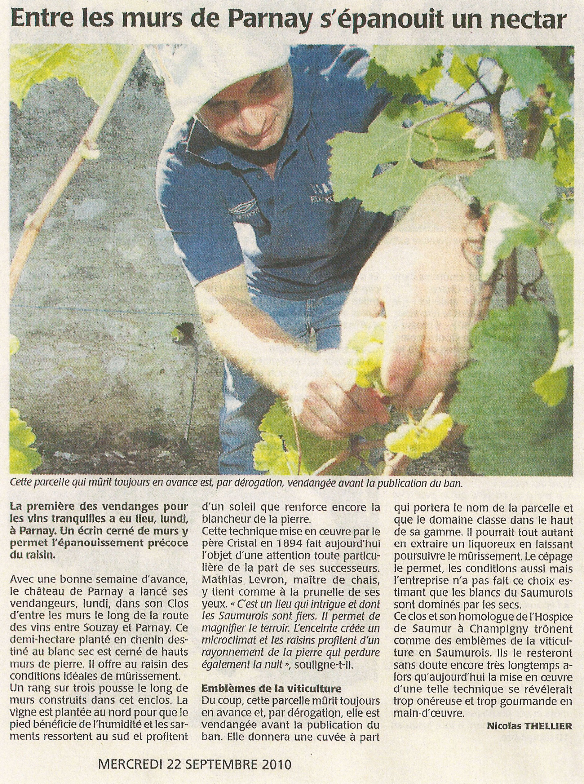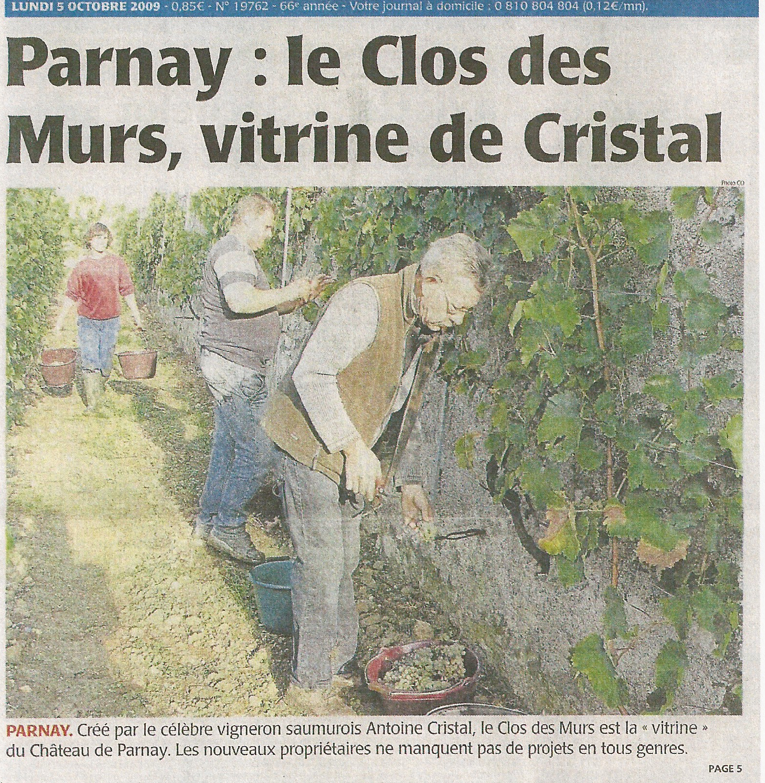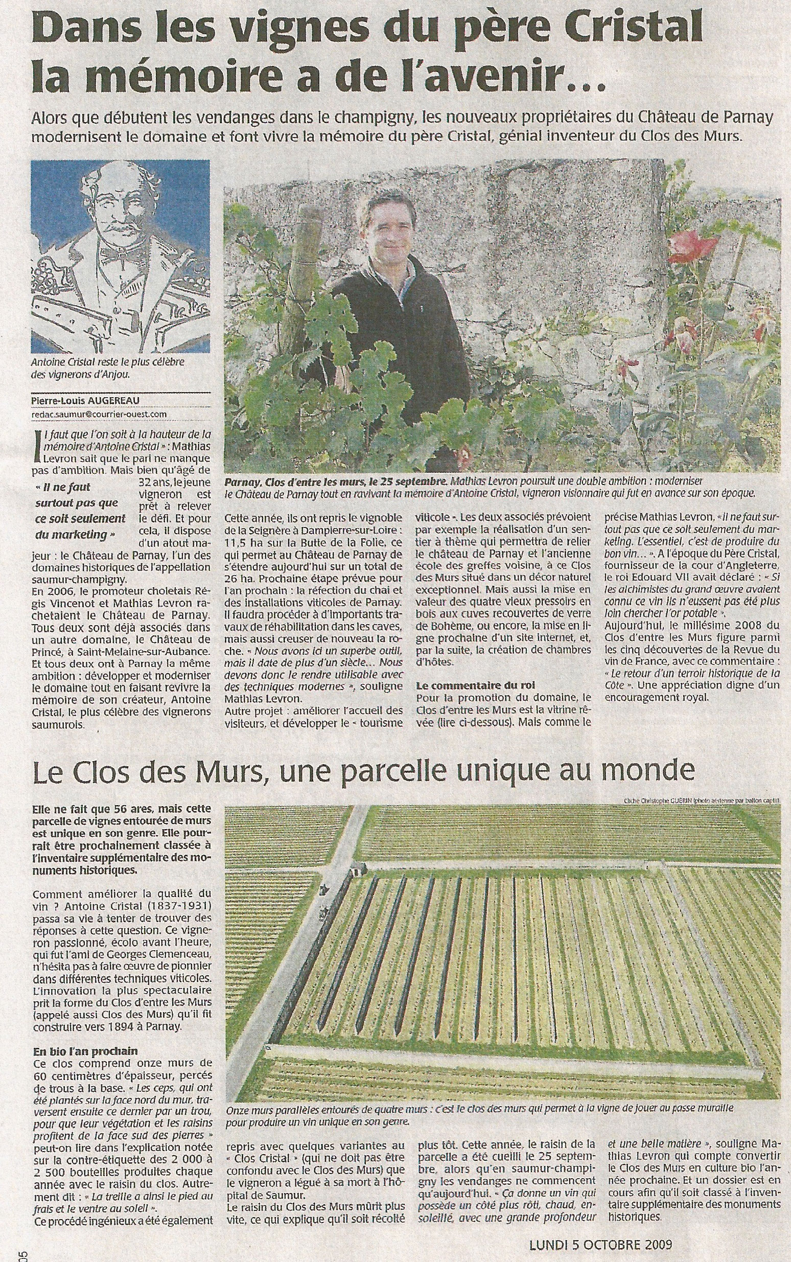1. Le Château de Parnay : le clos des Murs, vitrine de Cristal (Courrier de l'Ouest, 5 10 2009)